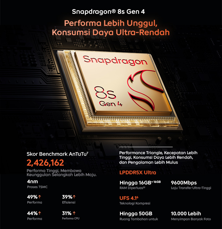 • 1st Snapdragon 8s Gen 4 + Q1 (Dual Chipset)