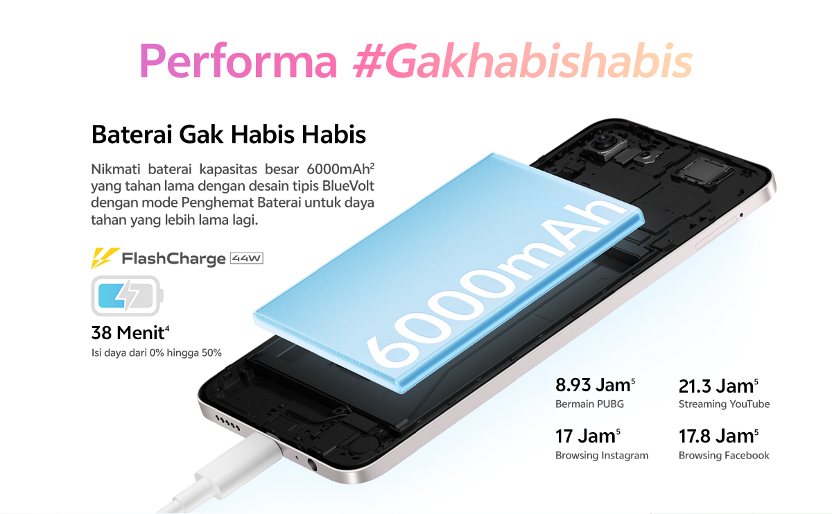 • 6000mAh + 44W FlashCharge