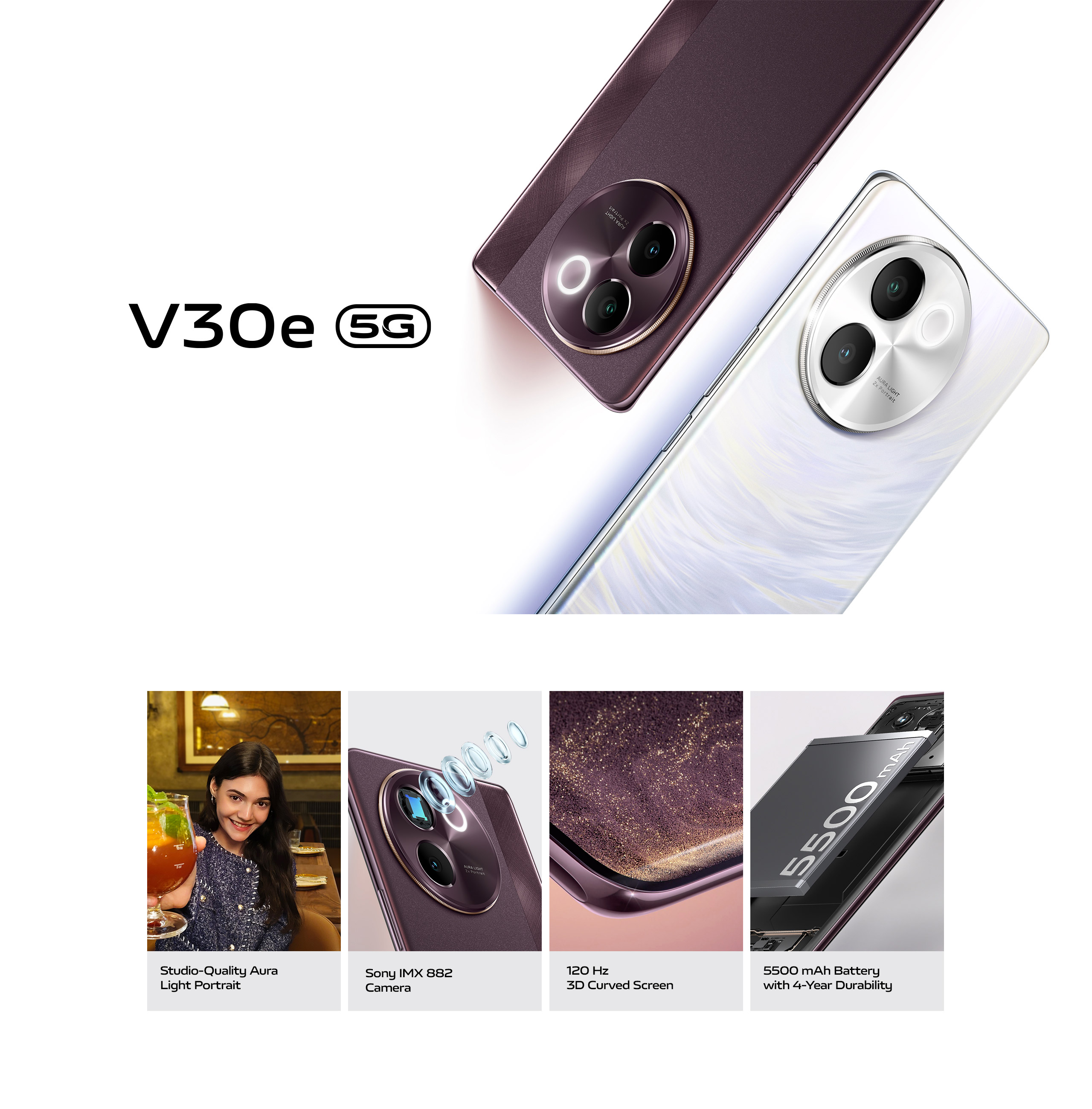 vivo V30e 5G 8GB+256GB Cloud White
