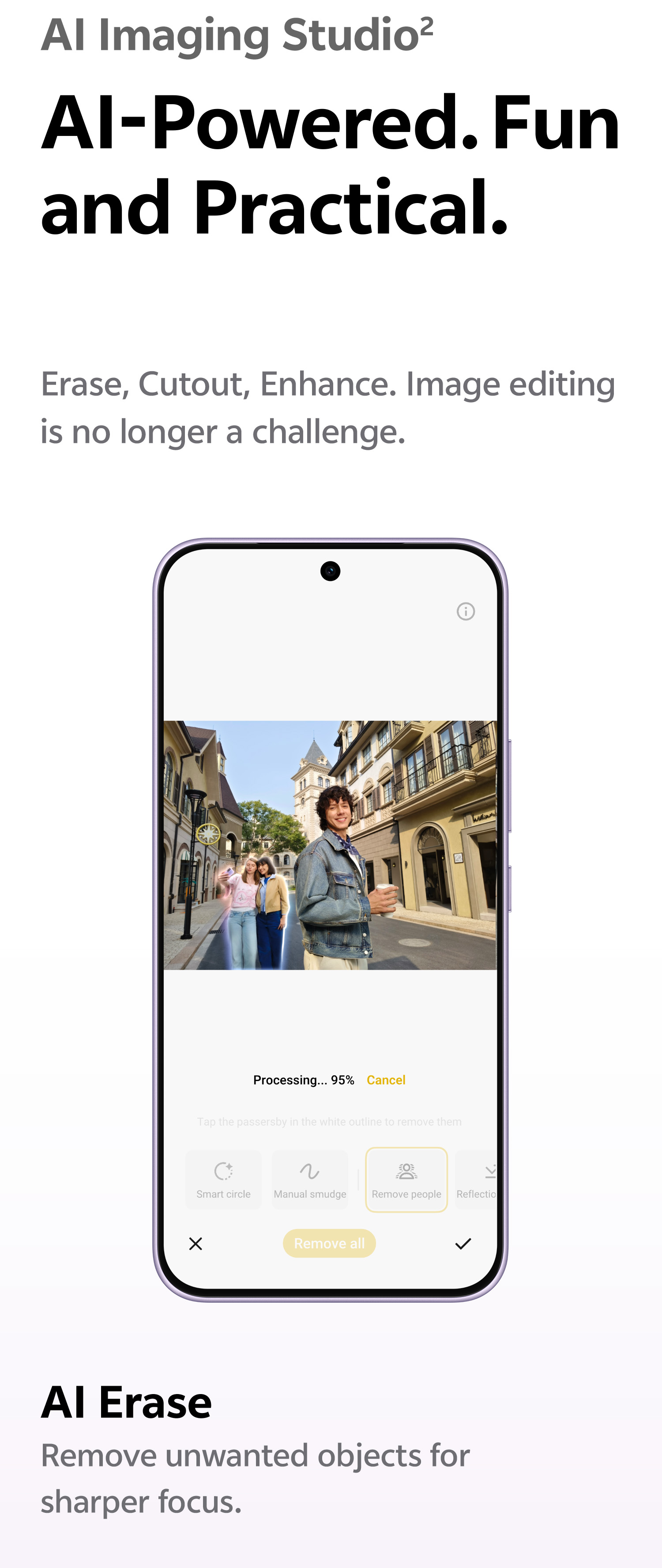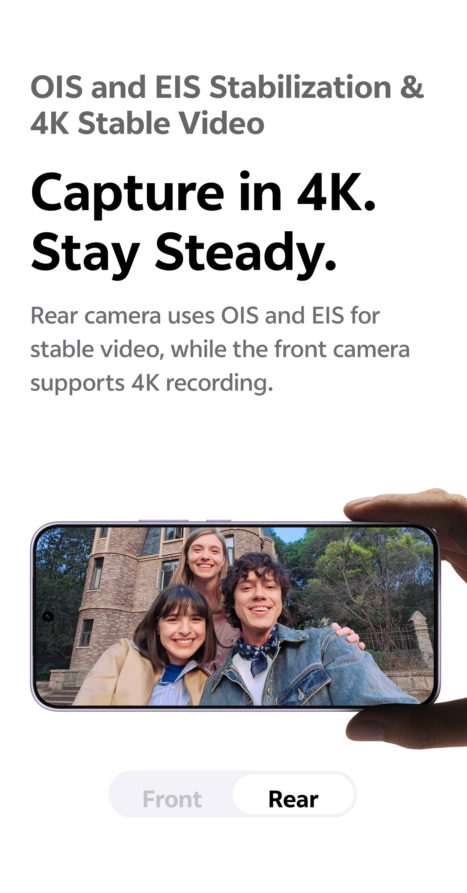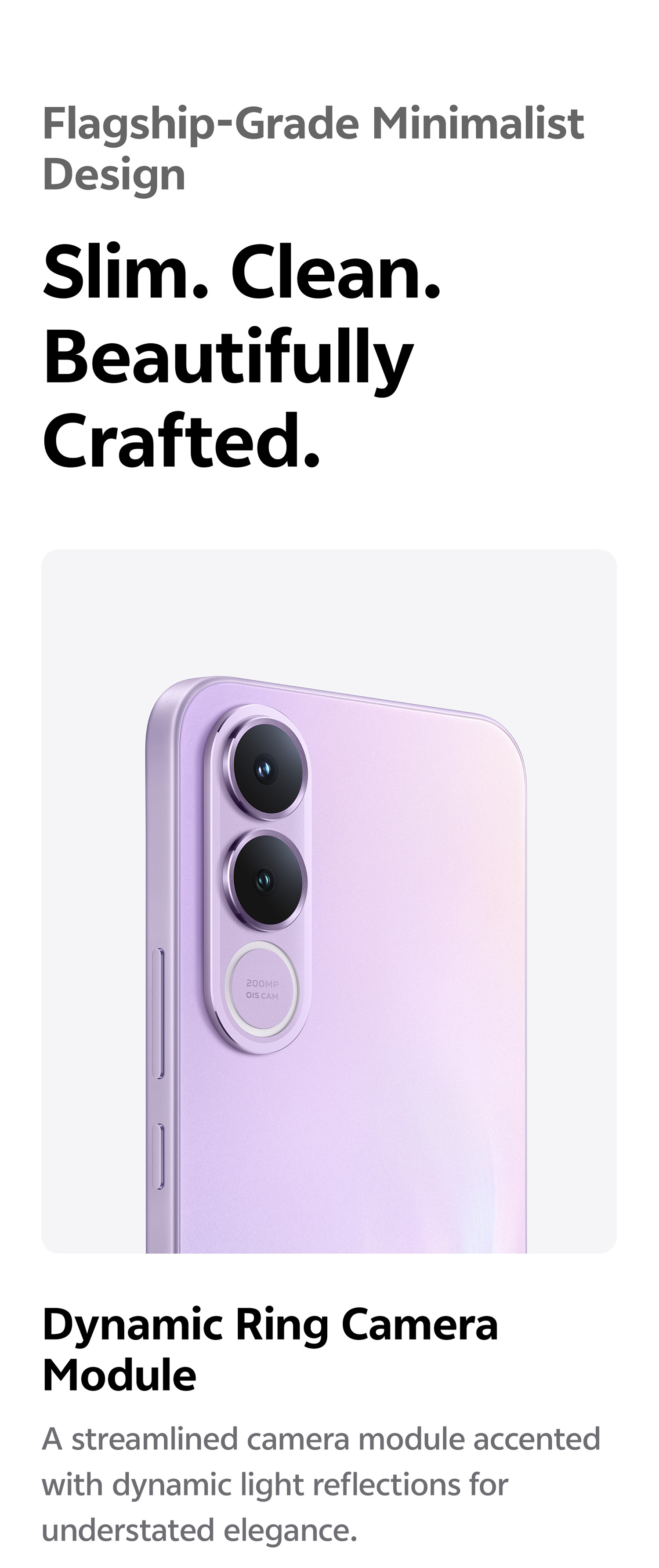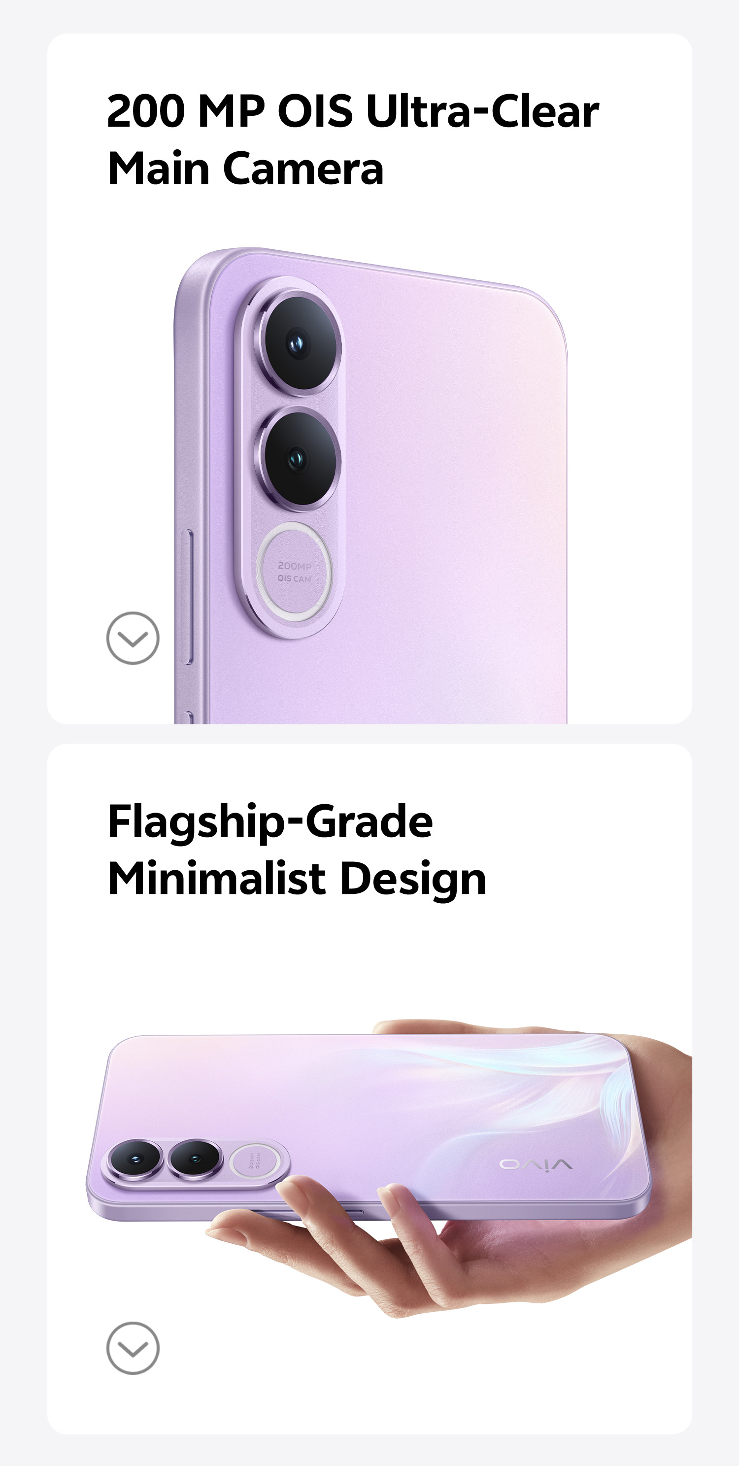 200 MP OIS ultra-clear main camera: supports AF, f/1.88; a FOV of 84°; 6P lens 8 MP 120° wide-angle camera: supports FF, f/2.2; a FOV of 120°; 5P lens