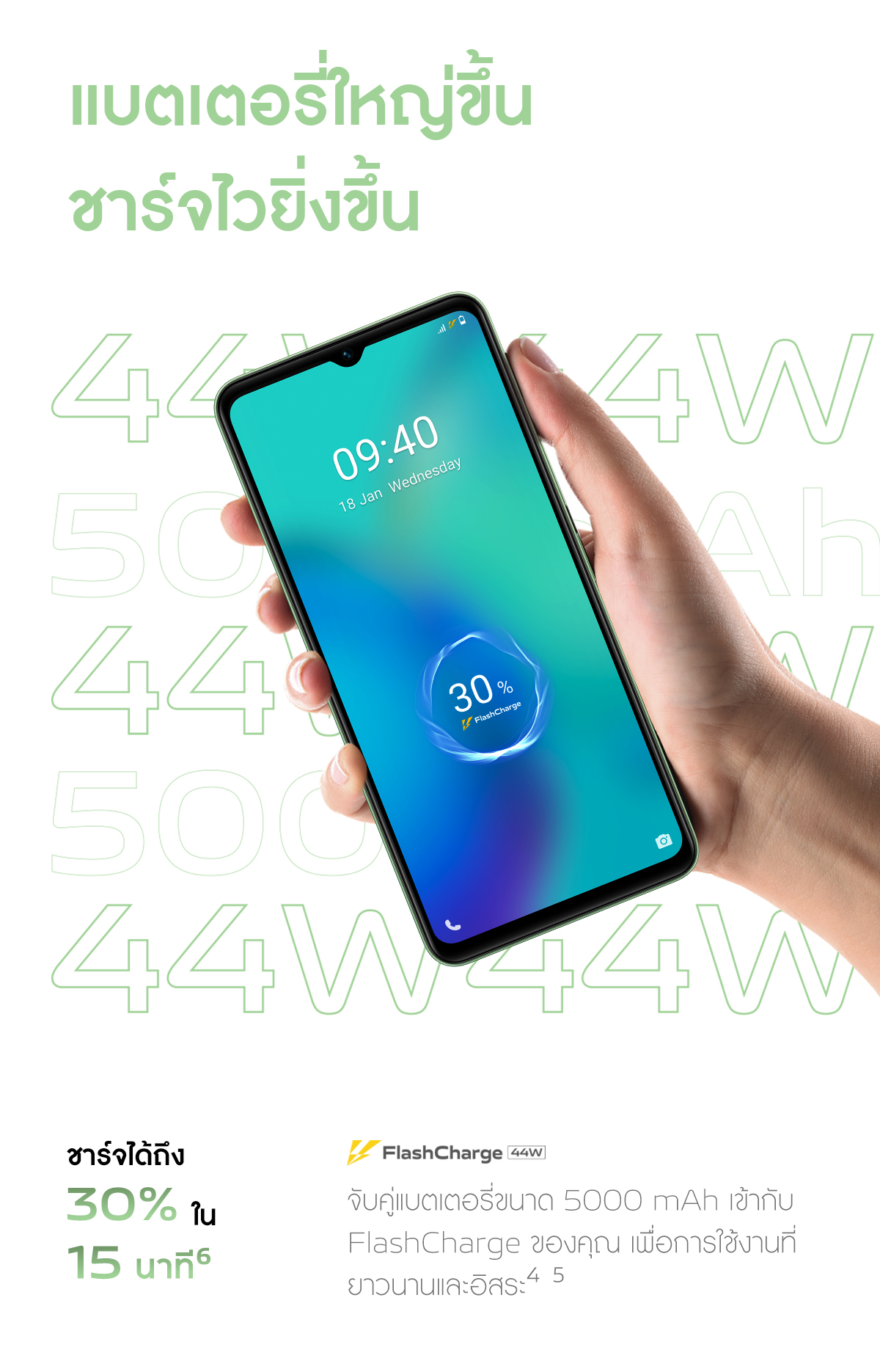 แบตเตอรี่ 5000 mAh ชาร์จไว 44W