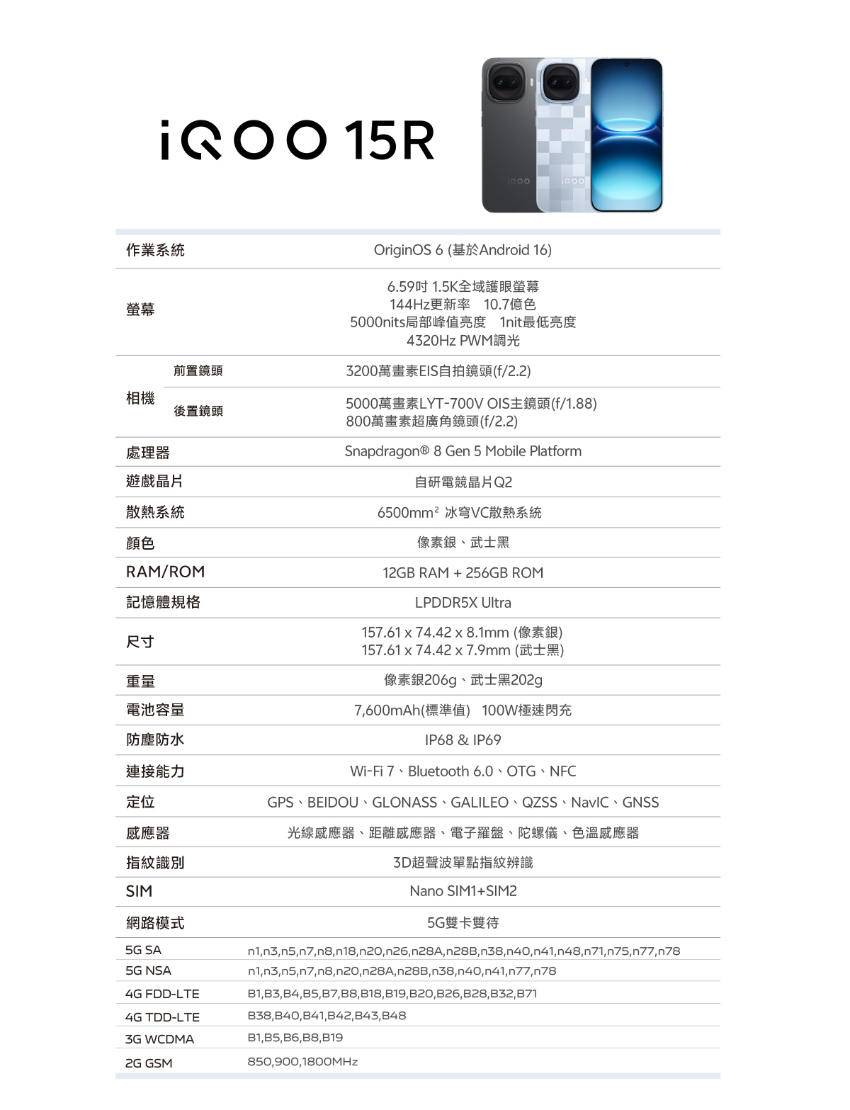 iQOO 15R (12+256G) 12G+256G 像素銀